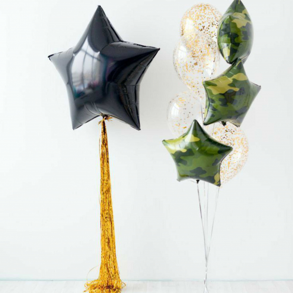 шары фольгированные звезды камуфляж 46 см с гелием 3 шт