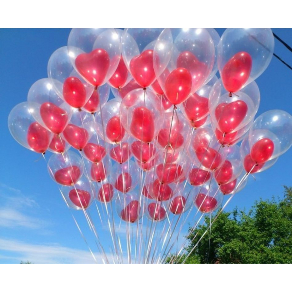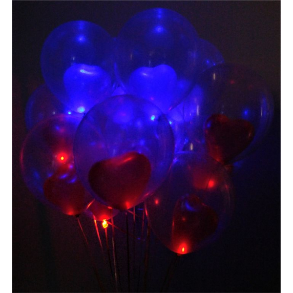 шары латексные прозрачные 33 см с гелием со светящимися шарами в форме сердца