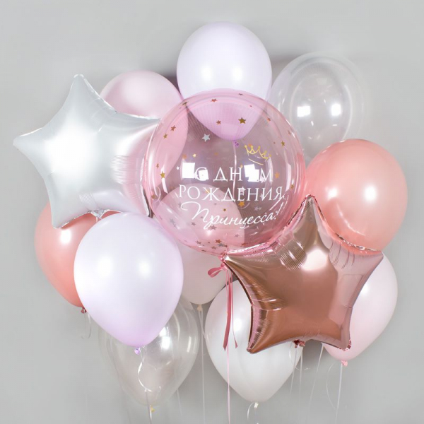 Шар Бабл розовый 48 см с гелием и индивидуальной надписью - 1 шт