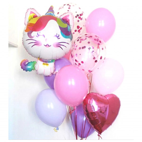 Шар фольгированный в виде котёнка-единорога 97 см с гелием