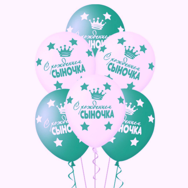 Шары латексные С рождением сыночка ассорти 35 см с гелием
