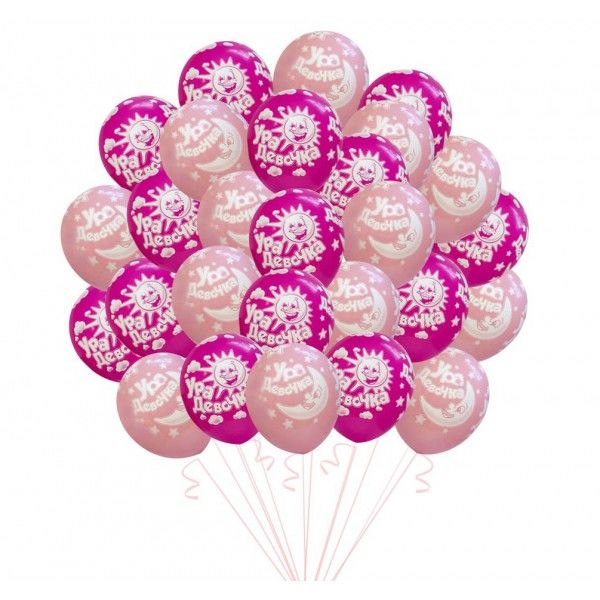 шары латексные УРА ДЕВОЧКА светло- и темно-розовые 35 см с гелием