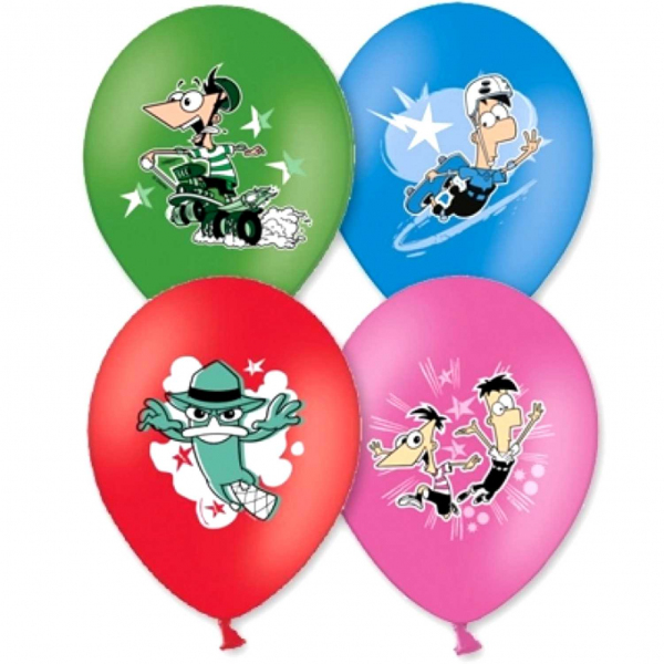 Шары латексные с изображением ФИНЕС И ФЕРБ 35 см. Цвета ассорти. С гелием