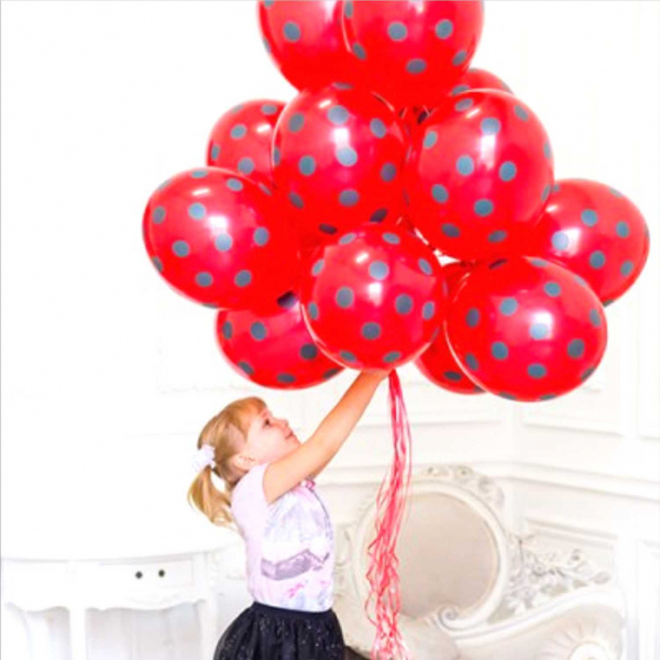 Шары латексные c принтом чёрный горох, 35 см. Цвет красный. С гелием