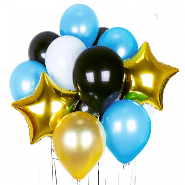 шары латексные белые, голубые, черные, золотые - 22 шт