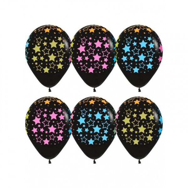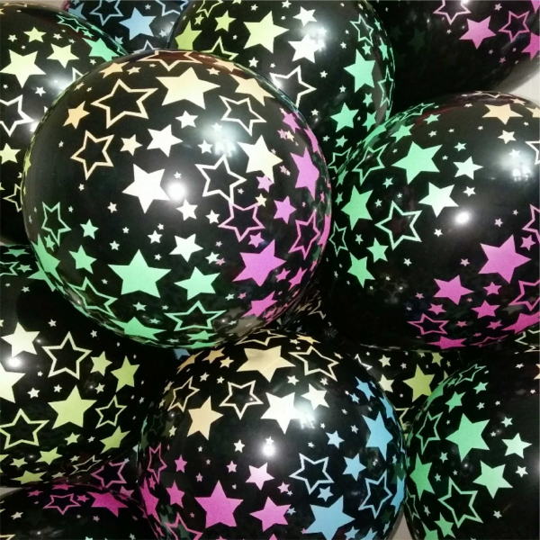 Шары латексные черные с рисунком звёзды разноцветные 30 см с гелием
