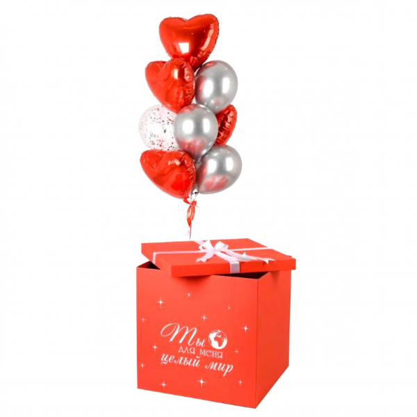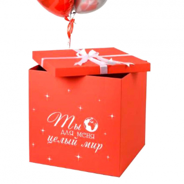 Коробка красная 70х70х70 см с индивидуальной надписью или надписью по умолчанию (см фото), лентой и бантом
