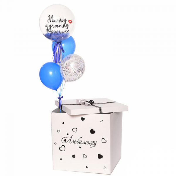 Коробка белая 70Х70Х70 см с индивидуальной надписью или надписью по умолчанию (см фото), лентой и бантом