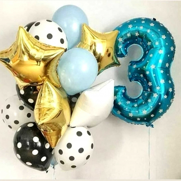 шар фольгированный звезды 46 см с гелием - 5 шт (золотые 3, голубая 1, белая 1)