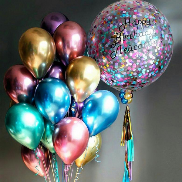 Шары латексные хром ассорти 30 см с гелием - 10 шт