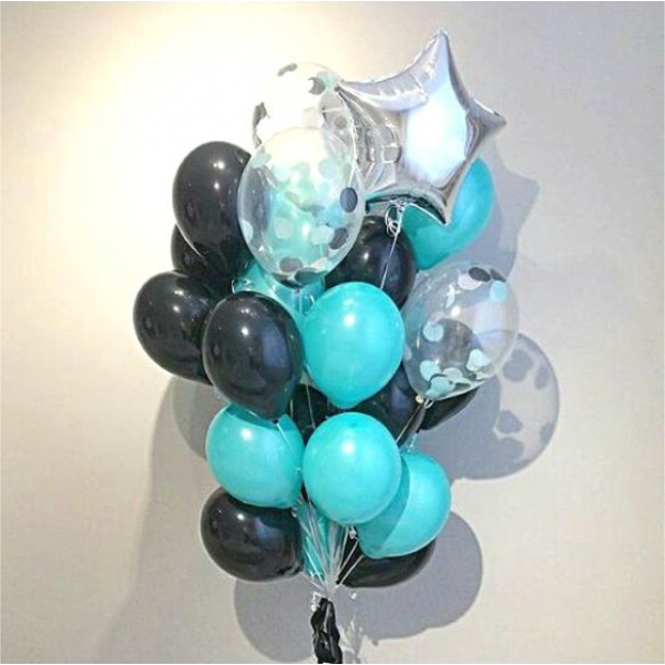 шары латексные 30 см мятные и чёрные с гелием - 20 шт