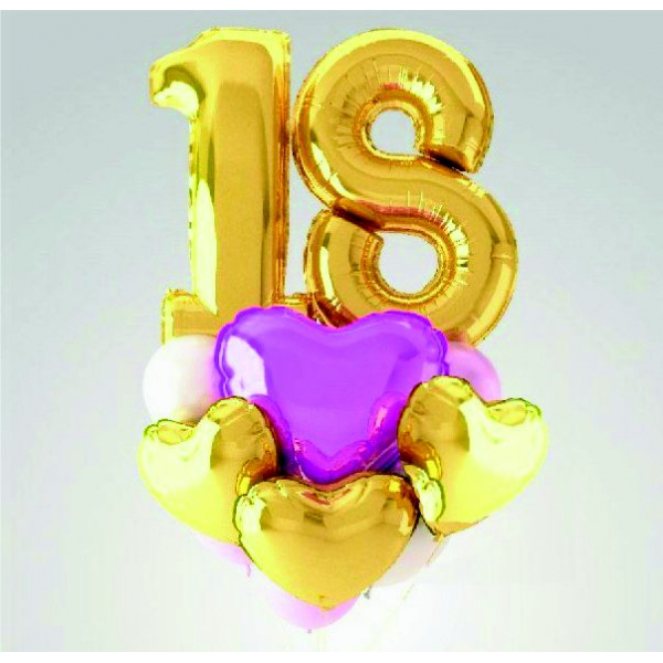 Шары-цифры фольгированные Золотые 100 - 105 см с гелием - 2шт