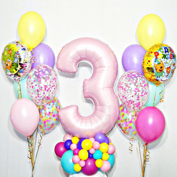 Цифра фольгированная на подставке из латексных шаров - 1 шт
