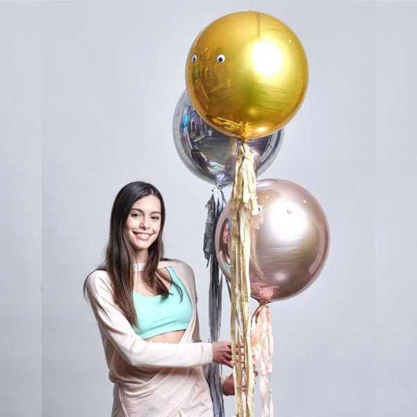Абсолютно круглый шар-сфера, способный украсить любой букет шариков и интерьер.
