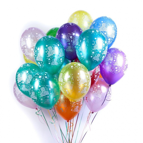 Соберите букет тематических гелиевых шаров, украшенных звёздами и поздравлениями с Днём Рождения на русском языке!