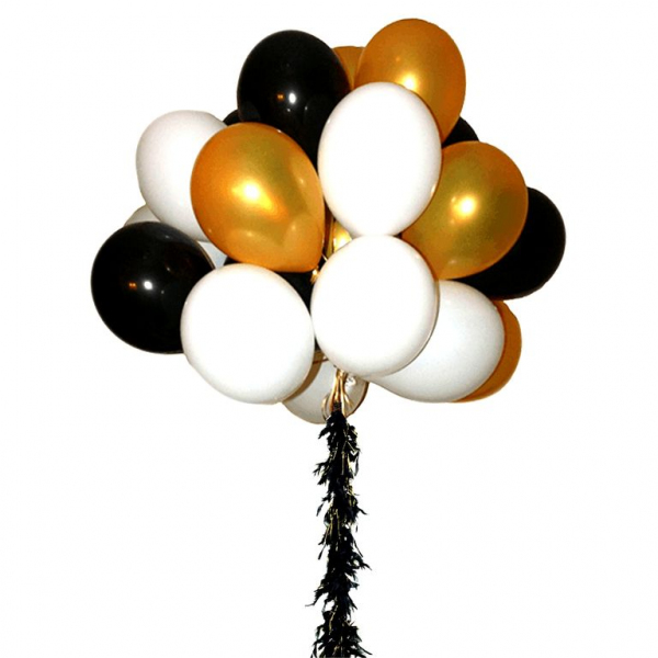 шары латексные: чёрные, белые, золотые. 35 см с гелием - 20 шт