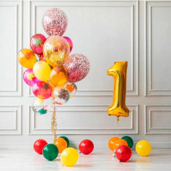 шары латексные 35 см осенние листья гелием - 12 шт