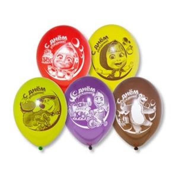 шар латексный Маша и Медведь с надписью "С Днём Рождения!" 30 см с гелием