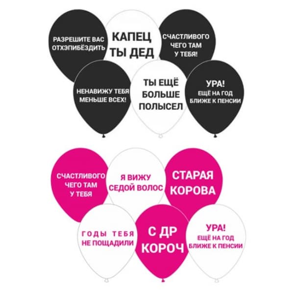 Шары с оскорбительными надписями ко дню рождения. Такое могут себе позволить настоящие друзья, да и то лишь в расчете на чувство юмора именинника. Ну а ели он или она им обладает, то такой подарок поднимет настроение всем присутствующим и станет объектом шуток еще на долго!