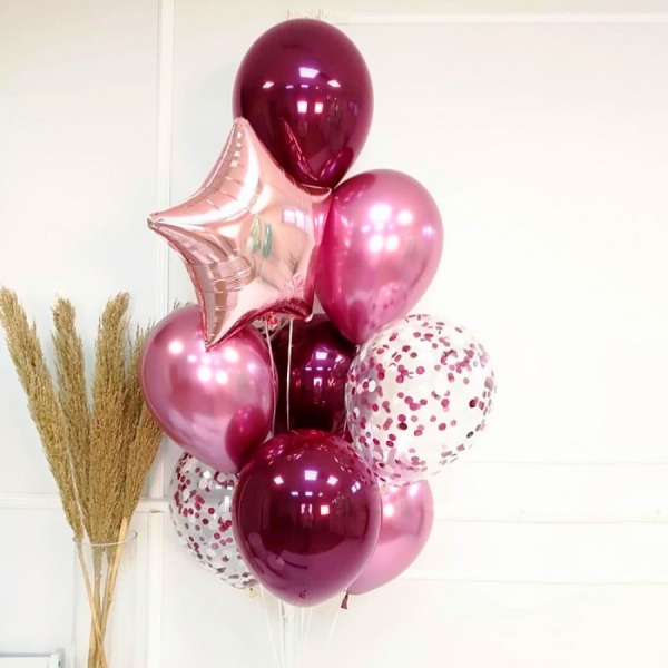 шары латексные хром розовые 35 см с гелием - 3 шт
