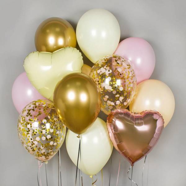 шары латексные пастель айвори, персик и нежно-розовые 35 см с гелием - 6 шт