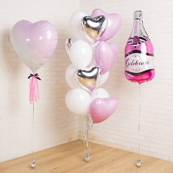 шары фольгированные сердца розовые и серебро с гелием - 6 шт