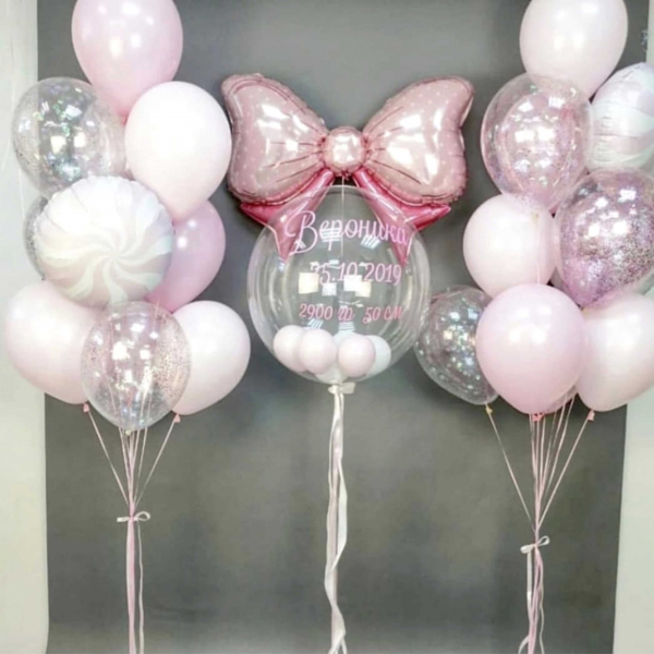 Шар Бабл розовый 48 см с гелием и индивидуальной надписью - 1 шт