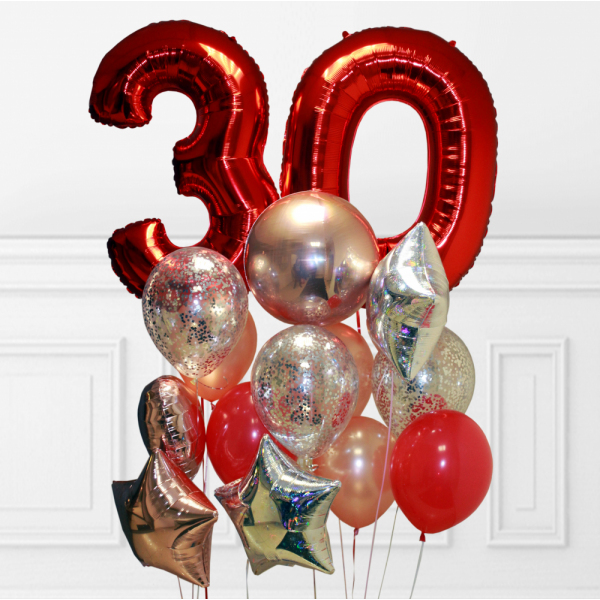 шар фольгированный цифра 100-102 см, цвет красный с гелием