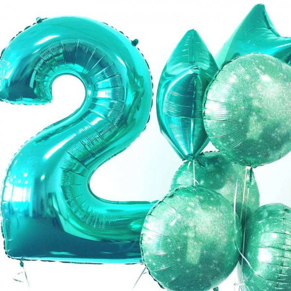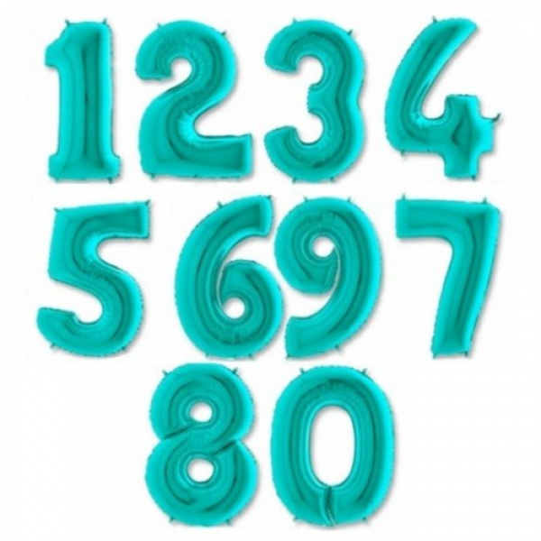 шар фольгированный цифра 100-102 см, цвет мятный с гелием