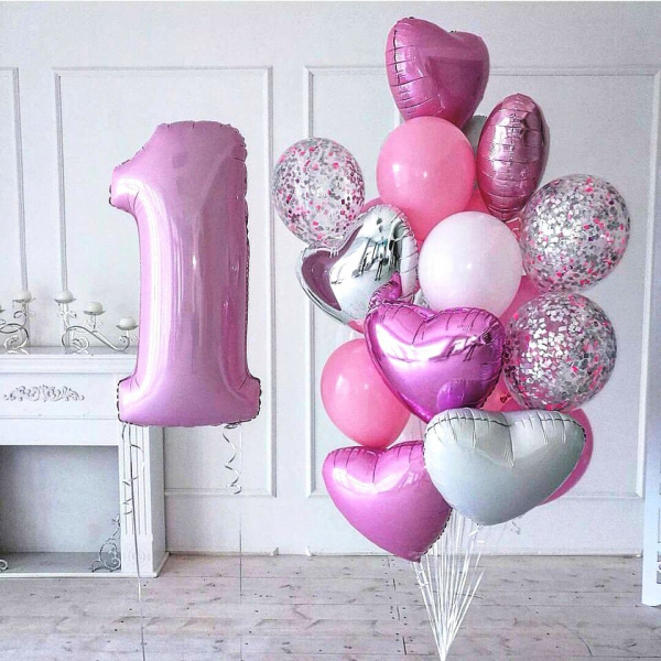 шар фольгированный цифра 100-102 см, цвет розовый с гелием