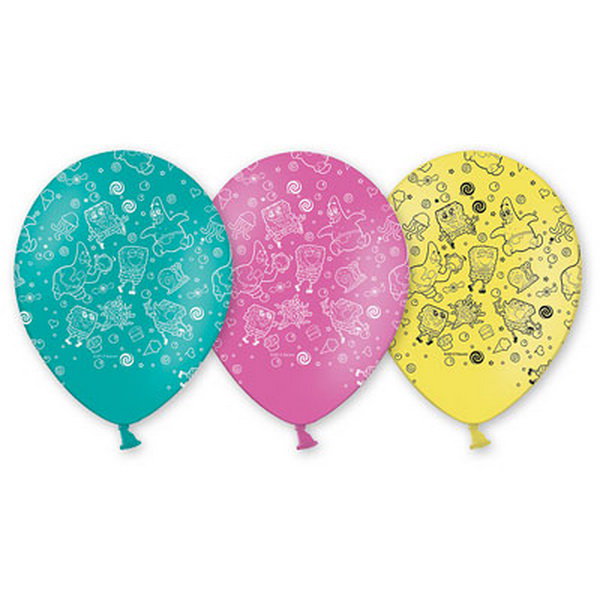 Шары латексные Губка Боб ассорти цветов 35 см с гелием