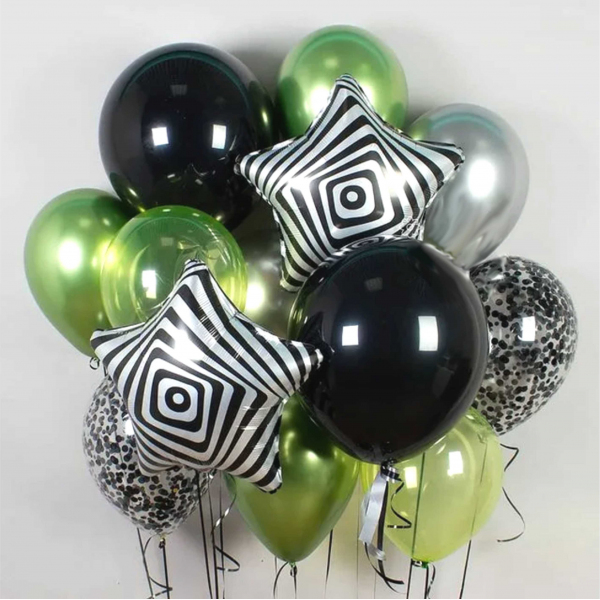 шары латексные оливковые и серебро хром 35 см с гелием - 5 шт