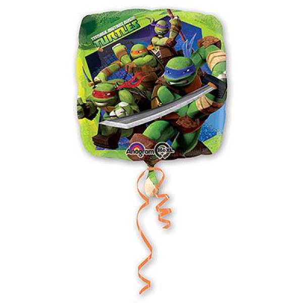 Шар квадратной формы Черепашки Ниндзя. Воинственные Черепашки в боевом снаряжении, изображенные на фольгированном шаре. Добавьте такие шары к бело-зелёно-крсным латексным шарам - получится прекрасный и запоминающийся сет из шаров с гелием для активного мальчишки, знакомого с подвигами Черепашек Ниндзя.