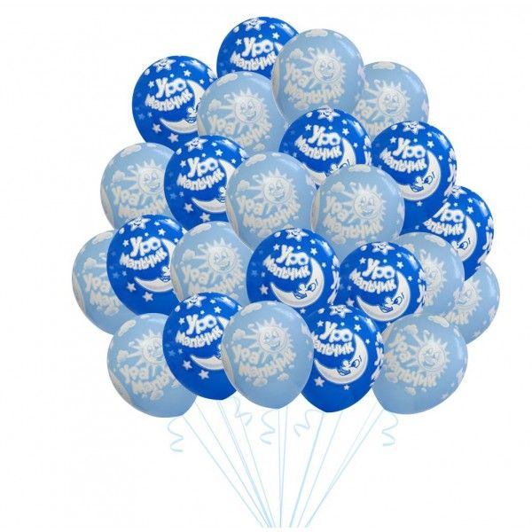 шары латексные УРА МАЛЬЧИК голубые и синие 35 см с гелием