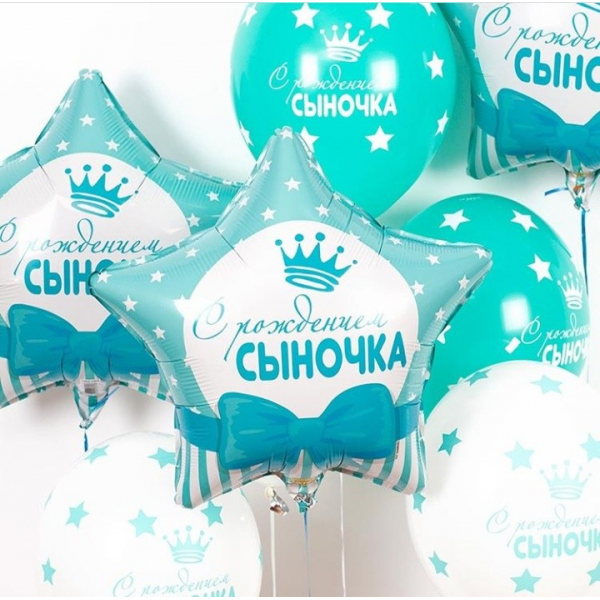 шар фольгированный Звезда "С рождением сыночка"45 см с гелием